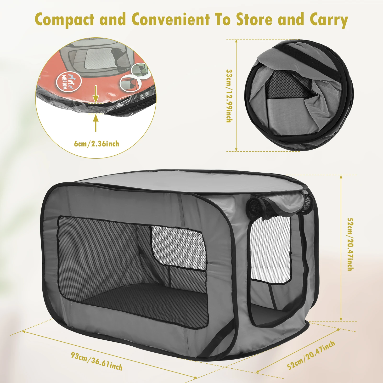 Suitable for Small Dogs: This pop-up dog crate measures 93 x 52 x 52 cm / 36.6 x 20.5 x 20.5 inches when unfolded, plenty of space to give small dogs, cats or other animals a safe and comfortable environment.